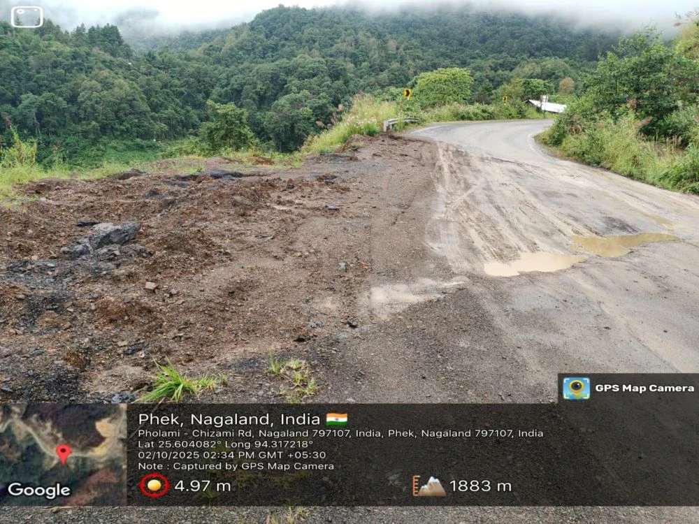 According to the CCPO, “the landslides from above the road have blocked the road and the side drainages throughout the distance from Pfutsero–Phek, the retaining walls and the protection walls have collapsed at several locations, there have been sinking areas where the road is badly damaged and due to poor quality workmanship throughout the total distance cracks have developed.”