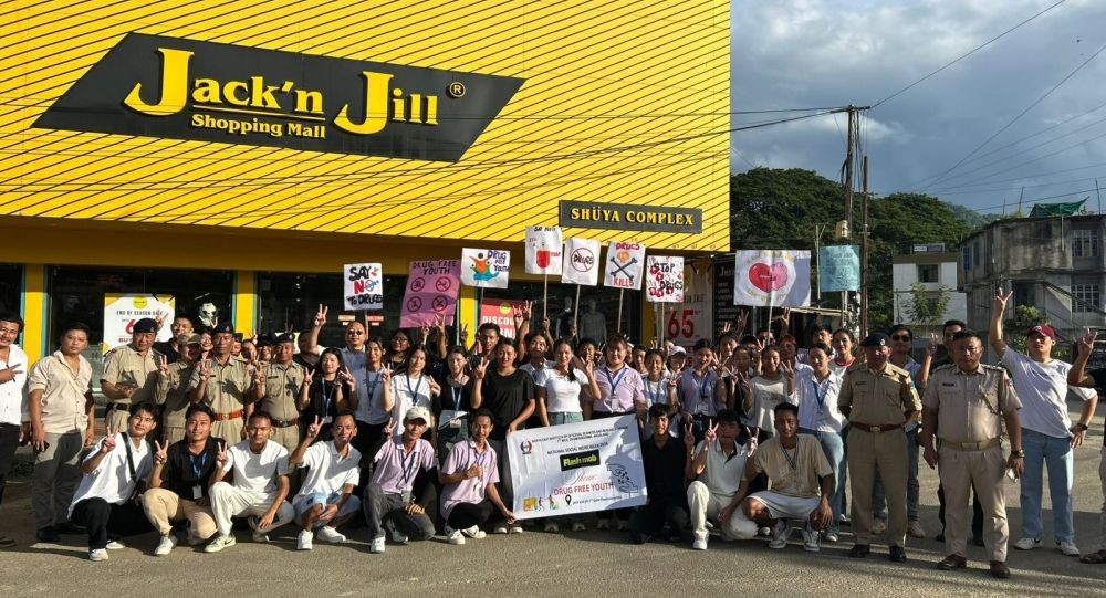 Students of NEISSR, Chümoukedima staged flash mobs on the theme “Drug Free Youth”on August 21 at Jack and Jill, Chümoukedima, in collaboration with the IQAC and Red Ribbon Club.