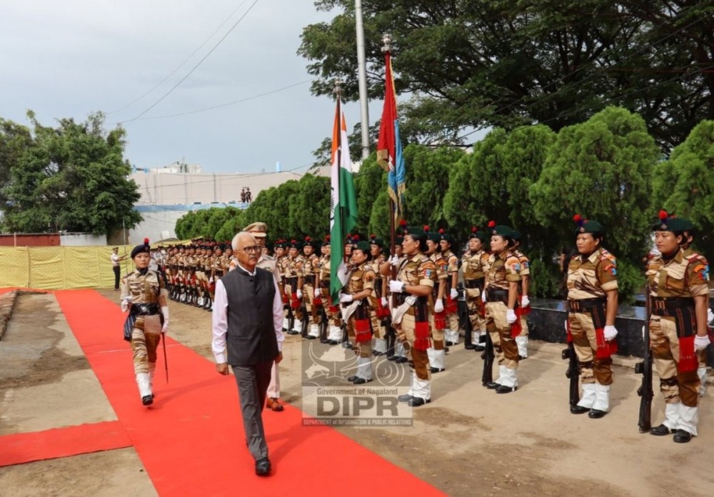 Nagaland Governor-designate Ajay Kumar Bhalla accorded a Rashtriya Salute by the 15th Mahila NAP (IR) upon his arrival at Dimapur airport on August 23. (DIPR Photo)