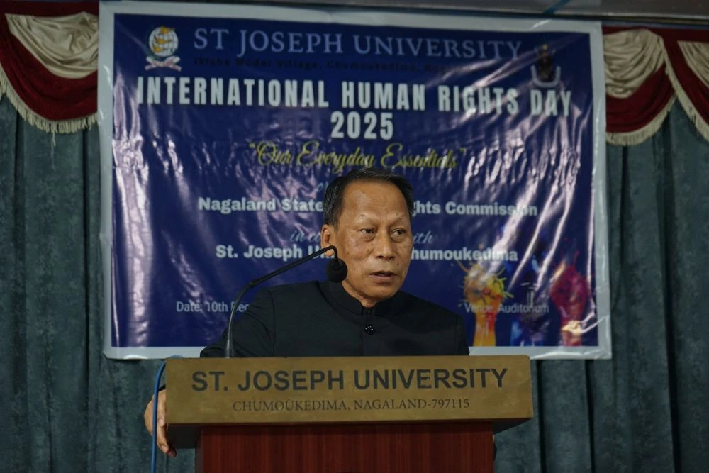 CHÜMOUKEDIMA, DECEMBER 10 (MExN): The Nagaland State Human Rights Commission (NSHRC) on Wednesday observed International Human Rights Day 2025 by organising an awareness programme at St Joseph University (SJU), Chümoukedima, under the theme “Our Everyday Essentials.” The event sought to familiarise students with the fundamental principles and legal framework underpinning human rights protections.