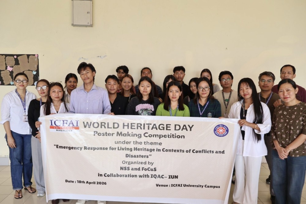 At ICFAI University Nagaland, a poster making competition was organised on campus. The event was jointly conducted by the university’s National Service Scheme (NSS) unit, cultural forum FoCuS, and the Internal Quality Assurance Cell (IQAC). It was based on the theme “Emergency Response for Living Heritage in Contexts of Conflicts and Disasters,” in line with the global focus of the observance this year.