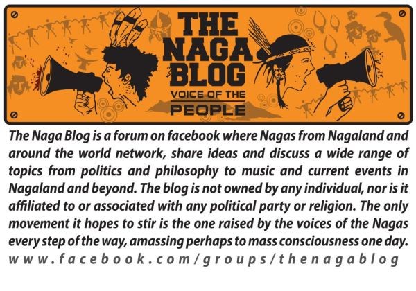 The Naga Blog is a forum on facebook where Nagas from Nagaland and around the world network, share ideas and discuss a wide range of topics from politics and philosophy to music and current events in Nagaland and beyond. The blog is not owned by any individual, nor is it affiliated to or associated with any political party or religion. The only movement it hopes to stir is the one raised by the voices of the Nagas every step of the way, amassing perhaps to mass consciousness one day. www.facebook.com/groups/thenagablog