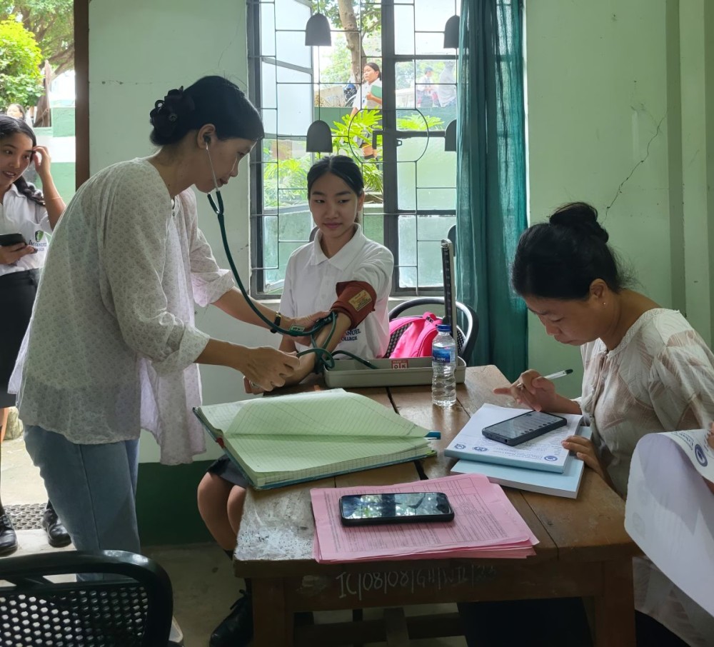 A student undergoes a blood pressure check during the free health camp organised as part of Immanuel College’s Health Campaign in Dimapur on August 30.