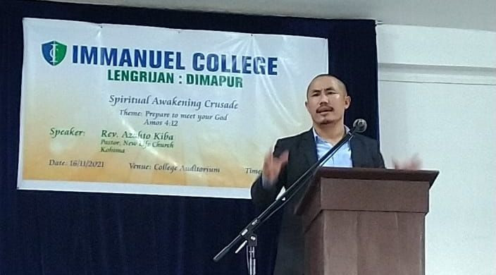 Dimapur, November 18 (MExN): The Immanuel College Dimapur organised a spiritual awakening crusade under the theme, "Prepare to meet your God" on November 16 with Rev Azahto Kiba, Pastor New Life Church,Kohima as the speaker.