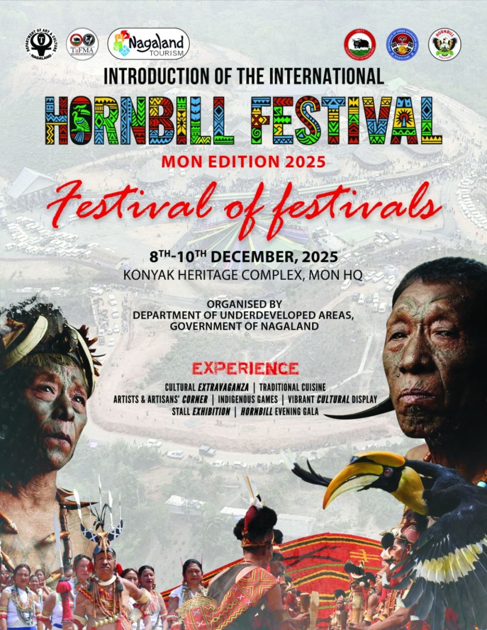 The Department of Art & Culture informed that the International Hornbill Festival-Mon Edition 2025 will commence from December 8 to 10 at Konyak Heritage Complex, Mon HQ.