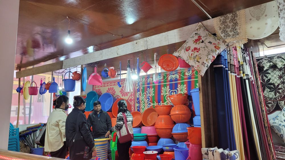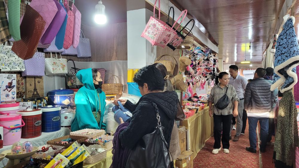 The International Trade Fair got underway in Kohima at Riishe Skywalk, North Block Keziekie, near Koinonia Church. The organizer Vitho Society informed that the Fair houses 40 stalls, which will go on till December 24. Guest countries at the fair includes; Egypt, Bangladesh and Afghanistan. The fair features Egypt furniture, Afghanistan dried fruit, Italian sofa design, Rajasthan achar, Thailand kitchenware, Indian handloom, Westfashions Ltd exclusive fashion wear house, Kashmiri shawl, Melamal, socks, garments, carpet, Ayurvedic medicines, kitchen wares, unbreakable plastic buckets jewelry etc. The fair keep open from 8:30 am till 9:00 pm. (Morung Photo)
