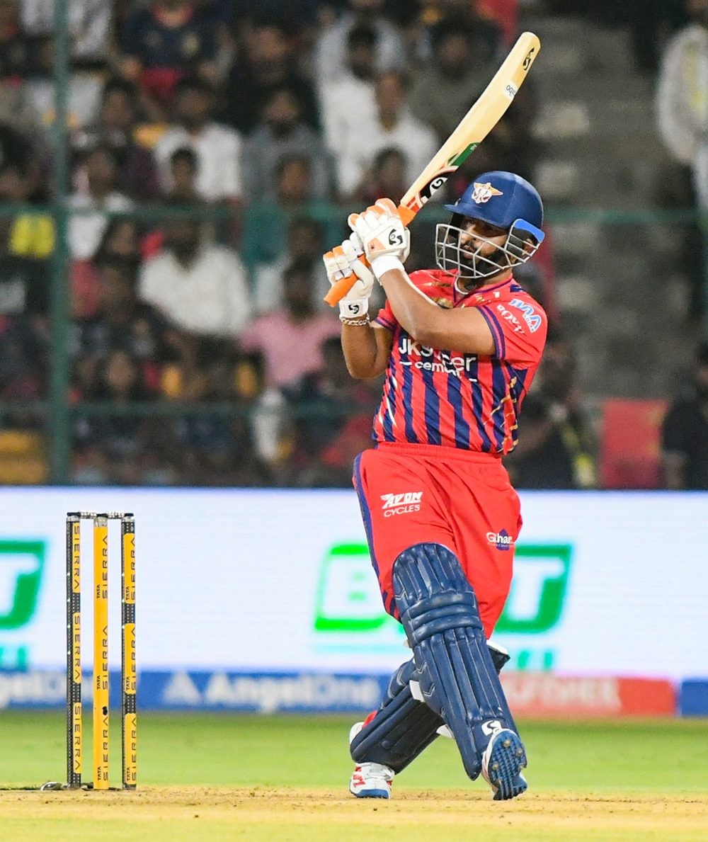 Bengaluru: Lucknow Super Giants' captain Rishabh Pant plays a shot during the Indian Premier League (IPL) 2026 match between Royal Challengers Bengaluru and Lucknow Super Giants at M. Chinnaswamy Stadium in Bengaluru on Wednesday, April 15, 2026. (Photo: IANS/Dhananjay Yadav)