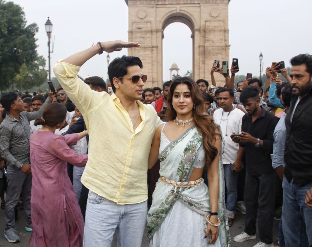 New Delhi: Actors Sidharth Malhotra and Janhvi Kapoor during the promotion of their upcoming film Param Sundari at India Gate, in New Delhi, Friday, August 22, 2025. (Photo: IANS/Wasim Sarvar)