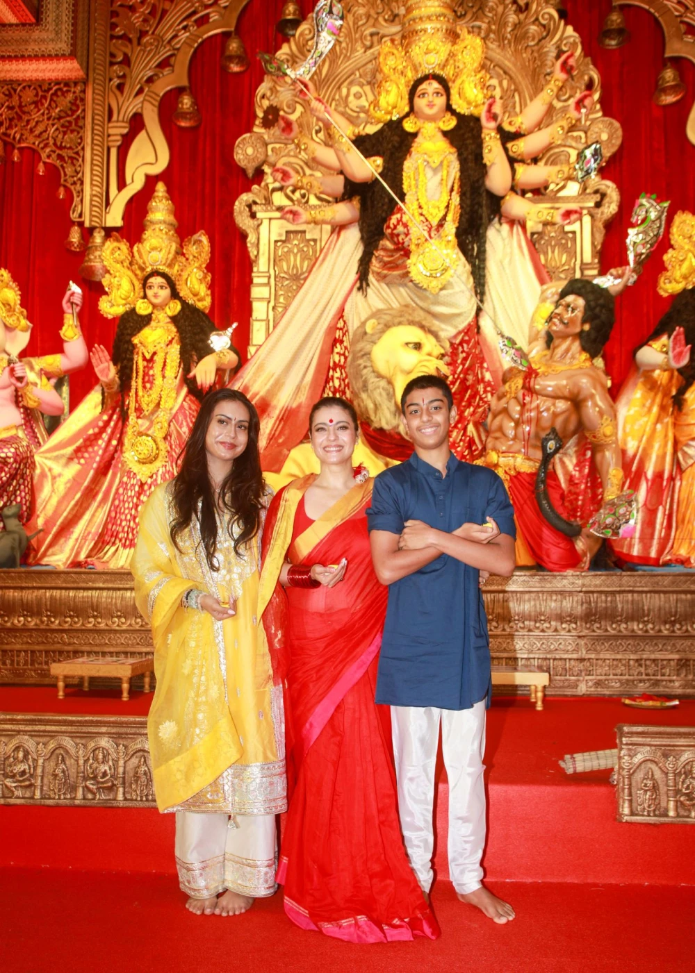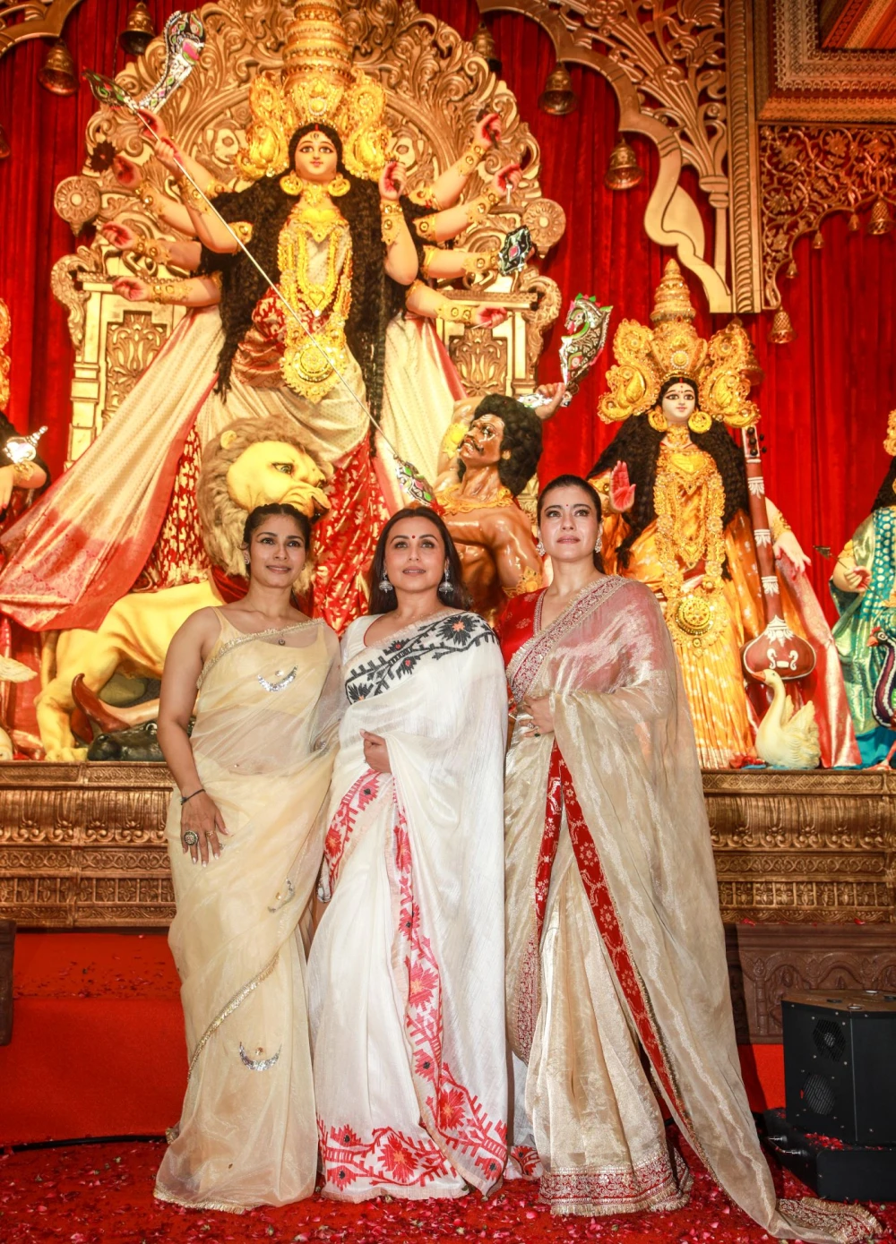 Mumbai: Actress Tanishaa, Rani Mukerji and Kajol attend the unveiling of Goddess Durga idol at the North Bombay Sarbojanin Durga Puja Samiti in Mumbai on Saturday, September 27, 2025. (Photo: IANS)