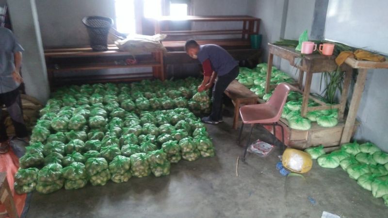 Likewise, on Thursday and Friday, villagers engaged themselves in collecting, binding and packing the stuffs. Village grown potatoes and rice were added.