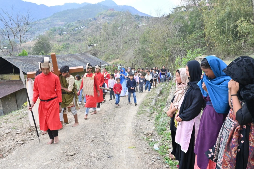 Kiphire, April 4 (MExN): St Peter’s Parish, Kiphire, marked Good Friday with a solemn observance featuring an enactment of the 14 Stations of the Cross by the Catholic Youth of Kiphire, drawing a large congregation and setting the tone for the commencement of the Divine Mercy Novena.