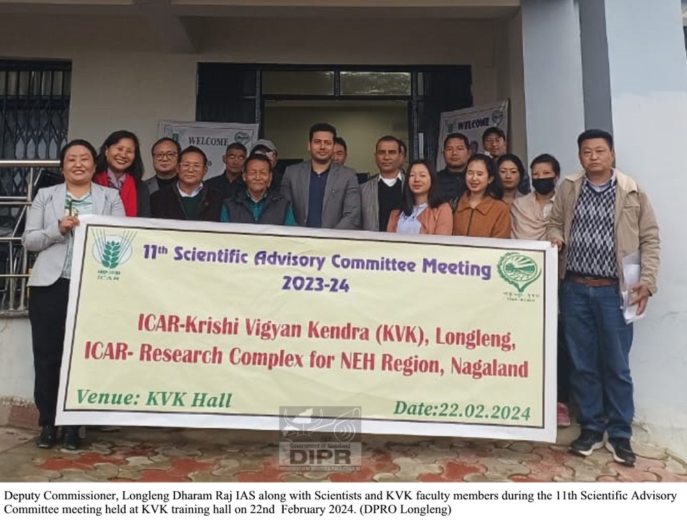 Longleng: ICAR KVK Longleng conducted its 11th Scientific Advisory Committee Meeting at KVK training hall on February 22 with Deputy Commissioner Dharam Raj IAS, as special guest. During the programme, the KVK progress report for the year 2023 was presented by Dr Lily Ngullie, ACTO (Animal Science) and Action plan for the year 2024 was presented by Dr Hari Charan Kalita, Senior Scientist cum Head, KVK Longleng. The DC in his address challenged the scientists to find an alternative to Jhum cultivation by cultivating high valuemedicinal crops as the land is fertile and unpolluted. He encouraged the allied department to work in convergence with KVK for better output of the farmers in the district and assured full co-operation from administrative side in implementing any projects.