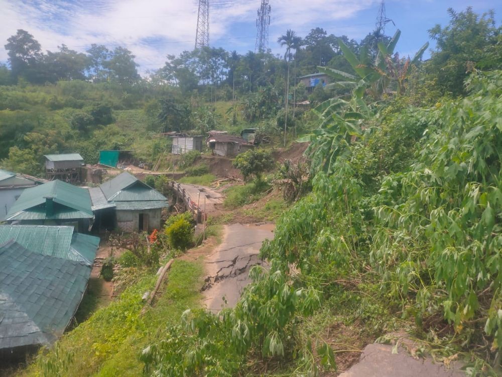 Damaged houses and roads in Chungtia village, Mokokchung, where landslides and soil sinking continue to threaten households and infrastructure.