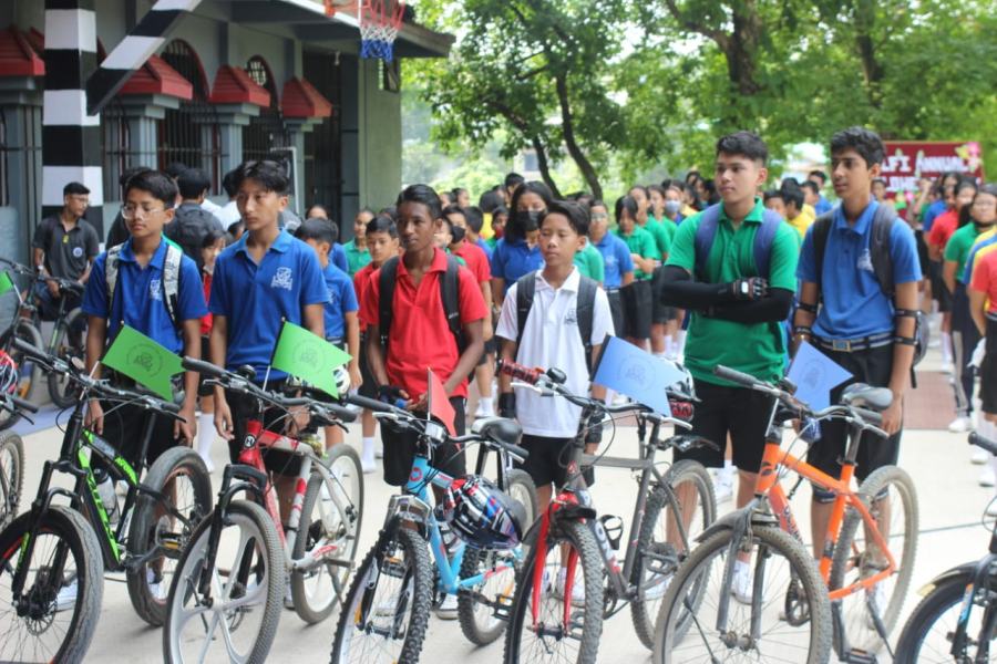 Dimapur, June 8 (MExN): Livingstone Foundation International (LFI) organized a bicycle rally on environmental awareness under the theme of ‘Living Sustainably in Harmony with Nature’ on June 8. The bicycle rally which included around 36 cyclists from Grades-VI to XII students of LFI, started from the School Main Gate at Thahekhu and went up to City Tower Junction and Nyamo Lotha Road. It culminated at Dhobinala Junction.