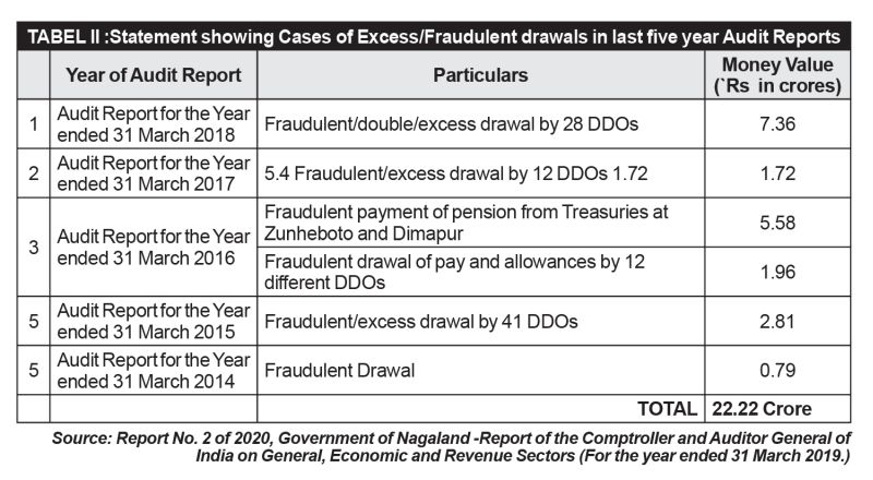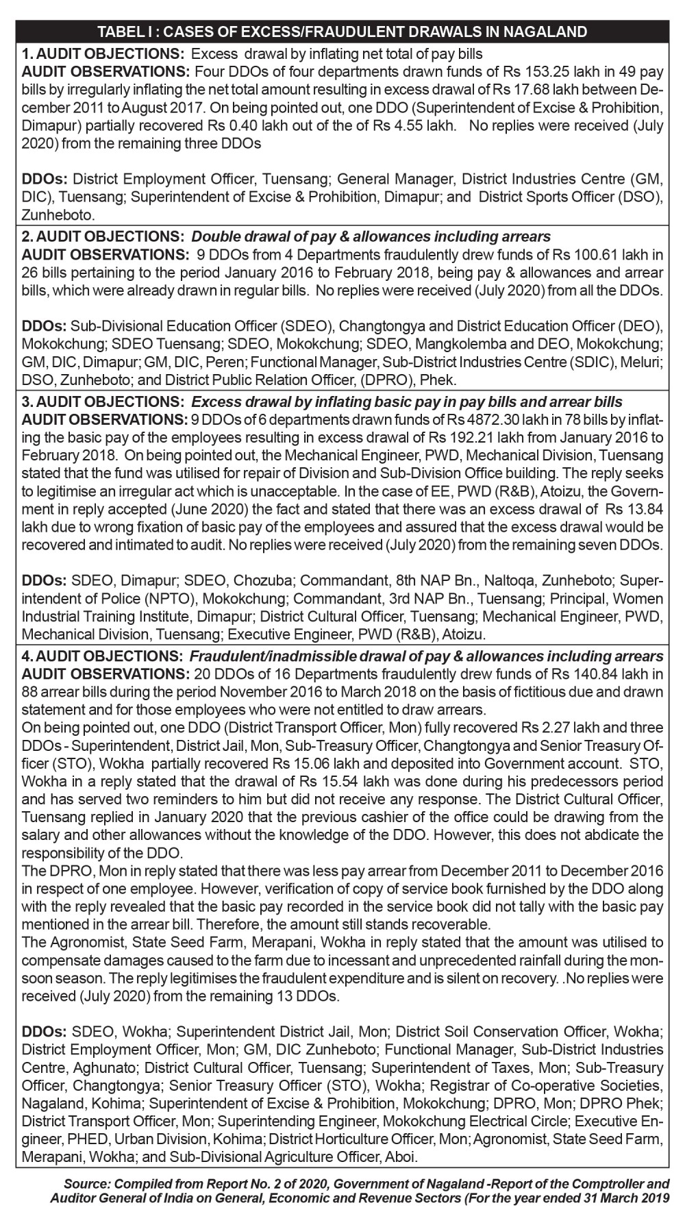 To check the cases of excess or fraudulent drawals in Nagaland, the CAG also give a set of recommendations including immediate recovery of amount misappropriated and initiation of strict actions against those involved in the malpractices.