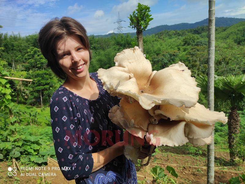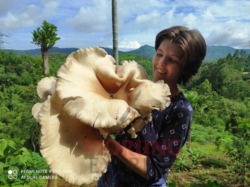 Hannah Brown, who lives with her family in Mokokchung town, holds a giant mushroom in her family farm at Satier Sector under Aliba village. In a short video uploaded by The Imchen Family in their YouTube Channel on Tuesday, Hannah, married to Limaonen, says that the neighbours brought the “massive mushroom.” The mushrooms were found by Imlineken Jamir in the forest of Satier Sector (Pig Breeding Centre) under Aliba village, Mokokchung on June 21 morning. (Photo Courtesy: Limaonen Imchen)