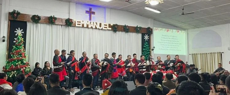 The service included musical offerings that enriched the celebration. The NCFS Worship Team led a Christmas Carol, engaging worshippers across generations. Christmas melodies were presented by the NCFS Sunday School Ministry, Sumi Christian Fellowship Shillong, and Zeliangrong Christian Fellowship Shillong, emphasizing the role of children and youth in sustaining the faith. Rev. Ramayon Jajo, Pastor of Tangkhul Baptist Church Shillong, offered a prayer for the community, lifting the needs and hopes of Naga families in the city.