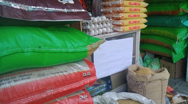A grocery shop in Kohima put a signage “No Mask No Entry. Please maintain social distancing.” The High Powered Committee (HPC) on COVID- 19 during its video conference with the District Task Force of all the districts on May 18, stated that the preparedness of all the districts with regard to essential commodities are sufficient as of now. (Morung Photo)