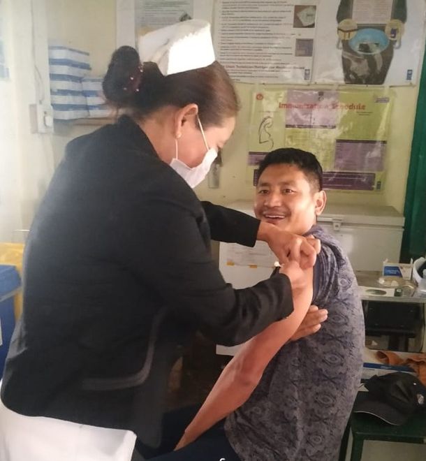 More than 50 registered persons led by Yimchungrü Tribal Council President S Throngso Yimchunger, were vaccinated at the Shamator Primary Health Centre on May 24. According to the DIPR, a total of 61 beneficiaries have registered for the first dose of the vaccine at the PHC so far. (DIPR Photo)