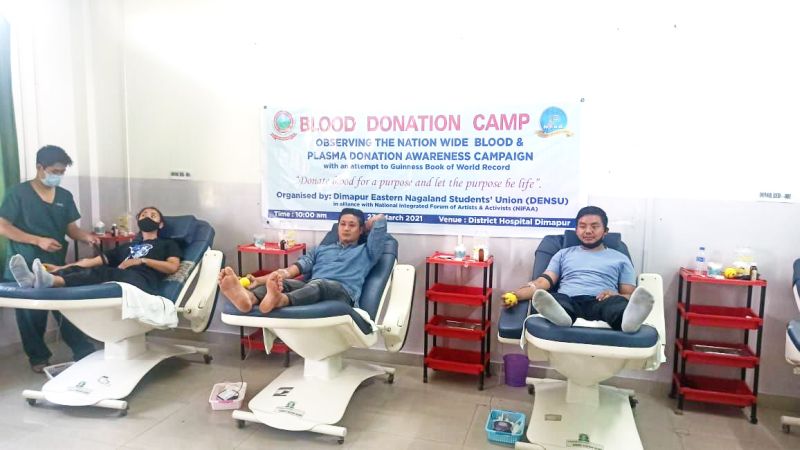 The Dimapur Eastern Nagaland Students' Union in alliance with NIFAA held blood donation camp at Civil Hospital Dimapur on March 23 under the theme ‘Donate blood for a purpose and let the purpose be life.’ A total of 70 persons donated blood during the event. (Photo Courtesy: DENSU)