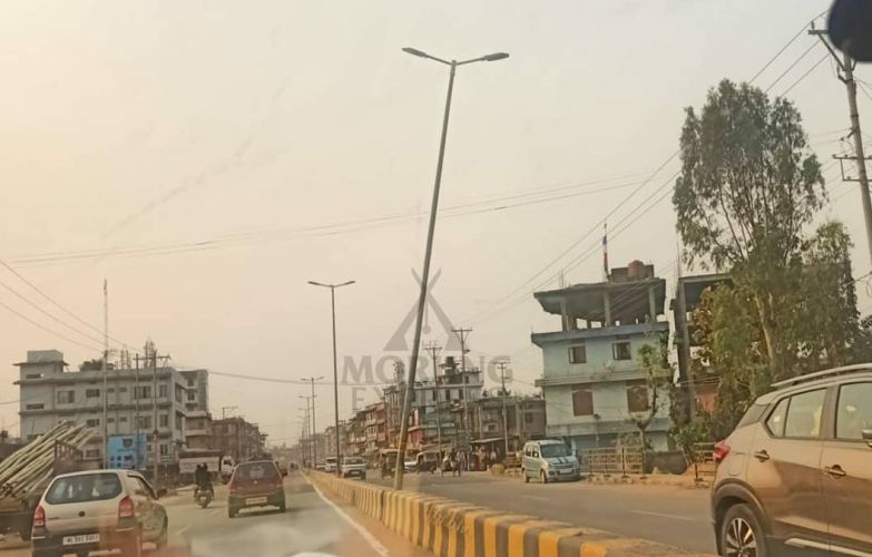 A light post along the NH-29 highway stretch in Purana Bazar, Dimapur seen precariously leaning towards the oncoming traffic. While the light post had been bent probably due to an accidental impact weeks ago, no action has been seen to fix the issue till date. (Morung Photo)