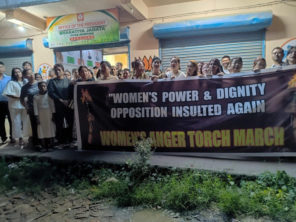 Dimapur, April 28 (MExN): The BJP Mahila Morcha organised a Mahila Jan Aakrosh Padyatra (Torch March) in Dimapur on Tuesday, raising issues related to women’s rights, dignity and equal representation.