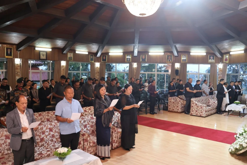 Longkumer also referred to the Naga custom that the home of the departed is never left empty, saying the fellowship at Raj Bhavan was in keeping with that tradition. Members of the Nagaland Legislative Assembly paid floral tributes at the solemn service chaired by State Chaplain Rev Izieteilung Tering.