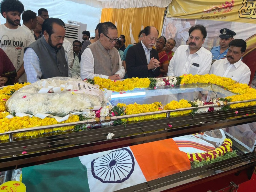The state funeral and cremation was held with full State honours at Besant Nagar Electric Crematorium, Chennai at 5:00 PM which was also attended by the Chief Minister, Dr Neiphiu Rio, Deputy Chief Ministers, Y. Patton and T R Zeliang, Chief Secretary, Sentiyanger Imchen IAS, Commissioner & Secretary to the Governor, Thavaseelan IAS, Former Commissioner & Secretary to the Governor, Rajesh Soundararajan IAS and DG Nagaland Rupin Sharma IPS among others, a DIPR report stated.