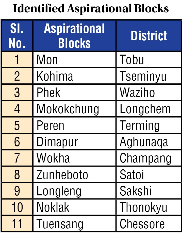 Kohima, March 24 (MExN): The Government of Nagaland has identifies eleven Aspirational Blocks in the State. The Planning Department will act as Nodal Department at the State Level.