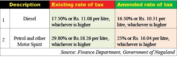 DIMAPUR, FEBRUARY 22 (MExN): The Nagaland Government has cut down the taxes on petrol, diesel and other motor spirits effective February 22.