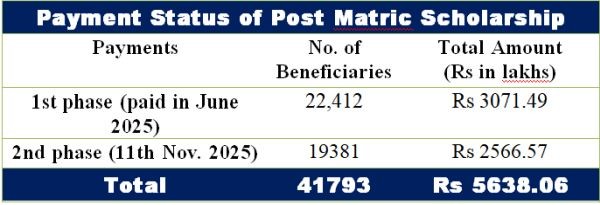 As per the department, so far a total of Rs 56.38 crore (Rs 5638.06 lakh) has been released as scholarship with 41793 beneficiaries for academic year 2024-25.