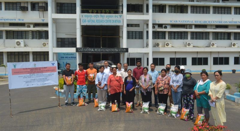 Quality protein maize and fodder maize seeds were distributed to farmer participants. (Photo Courtesy: ICAR-NRC on Mithun)