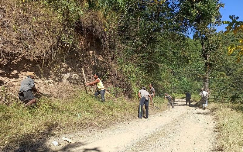 The public of Mopong Hongkong range initiated mass social work to ‘repair’ the dire road condition of PWD Road stretching from Border Road to Zero Point Yei village covering 17 kms on November 9. A press release from by L Kholee President MHSU stated that after the clearance of road side jungle, the filling and maintenance of the road conditions will be carried out within November with freewill contributions and services. Works have been allocated village-wise to be managed by respective village council.