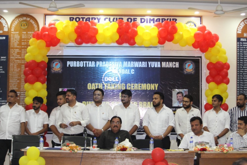Marwari Yuva Manch, Dimapur Sakha completed its Chartered Installation Ceremony at Rotary Centre on July 17. Om Prakash Ji Sethi, President, Marwari Samaj Dimapur was the chief guest while Prabhat Ji Nimodia, Fixed Asset of Purbottar Pradesiya, Marwari Yuva Manch was the guest of honour. It was attended by president and secretary of every Samaj of Dimapur. Meanwhile, the Marwari Yuva Manch, Dimapur Sakha lauded President Rakesh Kochar, Secretary Akshay Mittal, Treasurer Jay Kumar Agarwal, Pro Bikash Jain and their team for the installation.