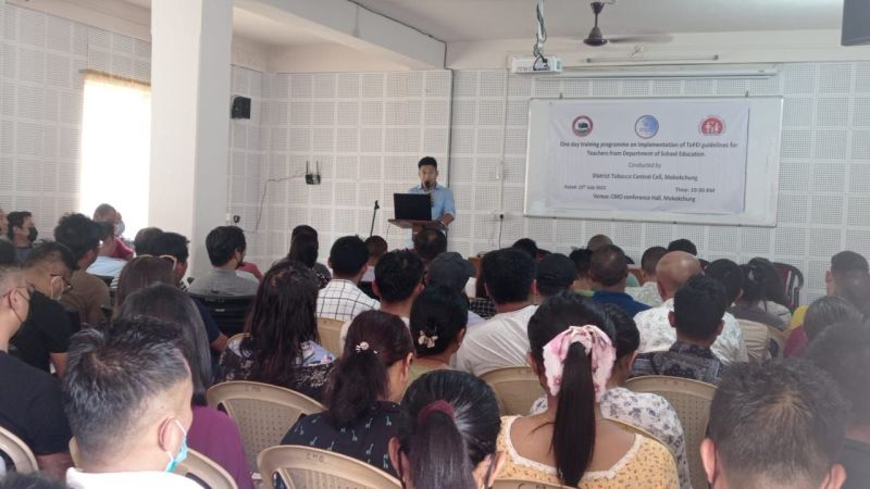 One day training on Implementation of ToFEI guidelines was conducted by District Tobacco Control Cell Mokokchung for teachers under the Department of School Education at CMO Conference Hall, Mokokchung on July 15. All together representatives from 75 School attended the training and registered in the ToFEI App to carry out the activities for declaration of Tobacco Free Educational Institution. Nukshiwati Longchar, District Consultant DTCC briefed about the basic, guidelines and procedures. The objective of the training was to generate awareness on the harmful effects of tobacco and to protect children from tobacco use.