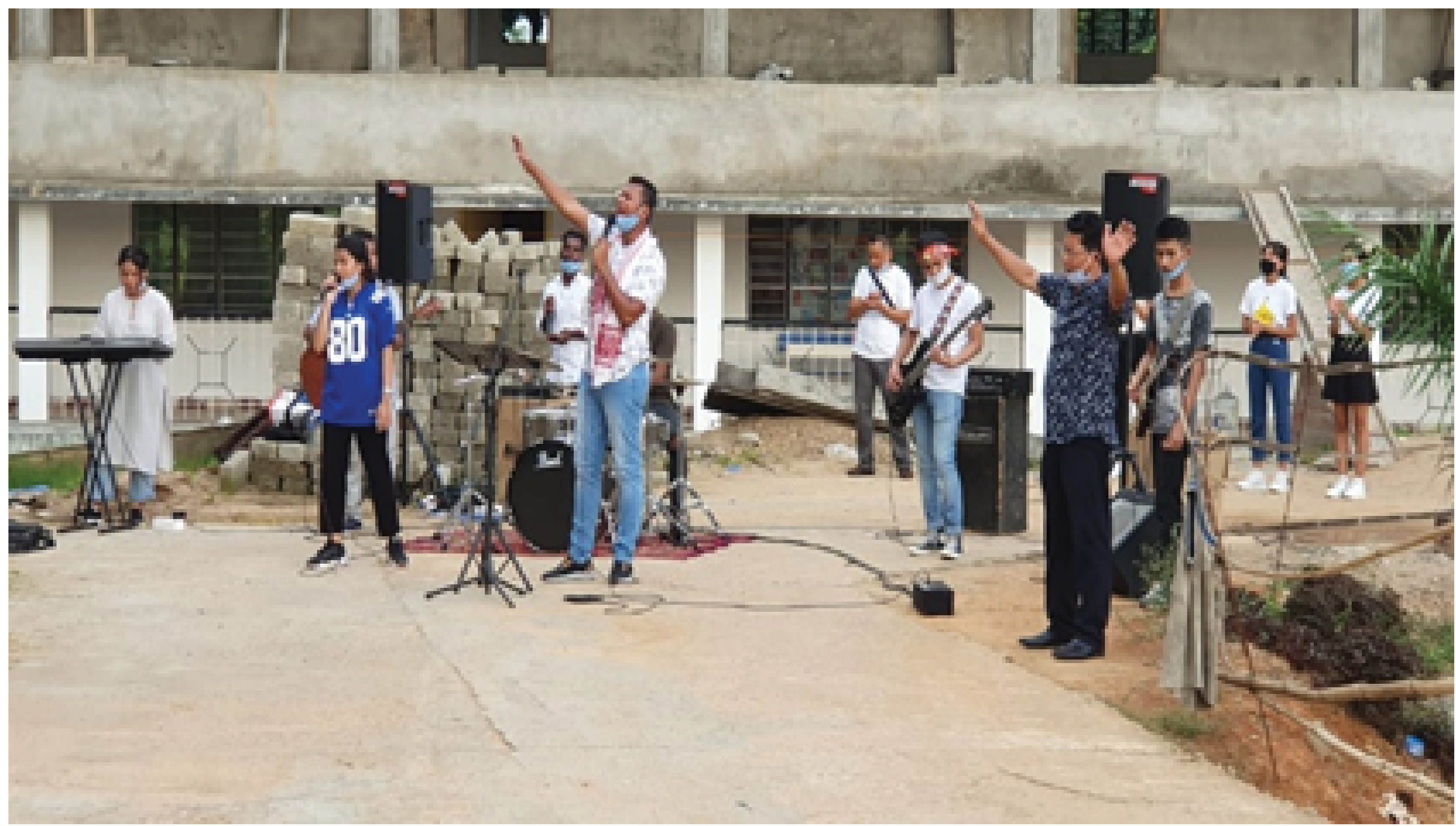 The Assemblies of God Churches, Dimapur visited the quarantine centres at Youth Hostel and Bethesda Hr Sec School and provided lunch. They also conducted a special prayer along with praise and worship at quarantine centre in St. Joseph University and provided dinner on June 20. (Photo Courtesy: AGC, Dimapur)