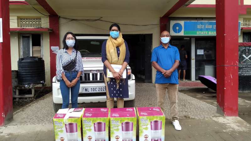 North East Initiative Development Agency (NEIDA) donated four units of Tata Swach water purifier to the quarantine centres in Kiphire Town on June 19. The water purifier was handed over to the Deputy Commissioner, Sarita Yadav, IAS, in her office complex, Kiphire Town by Alilila Sangtam, Chairman of Ritsa Self Help Group and liyanse Sangtam. (Photo Courtesy: NEIDA)