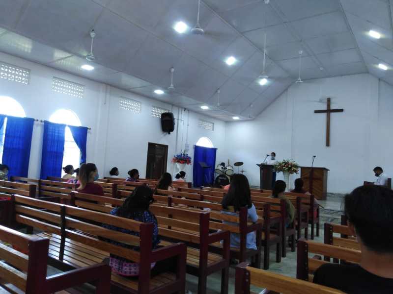 Congregation at Nagamese Baptist Church (NBC), Ura Villa, Dimapur attends Father’s Day Sunday Service following special protocol of social distance on June 21.