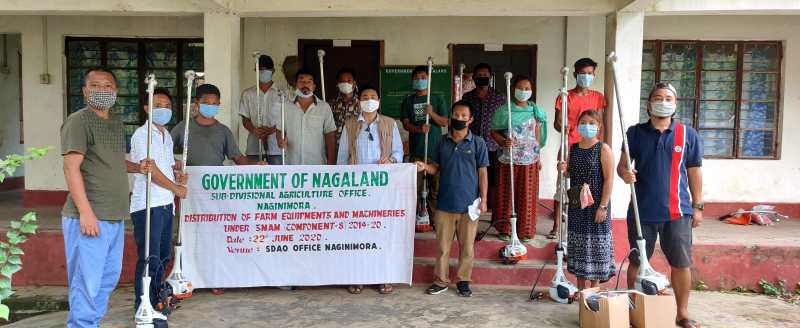 The Department of Agriculture distributed machineries and equipments at Naginimora under SMAM 2019-20 in the presence of Renabomo Odyuo, ADC Naginimora at SDAO Office, Naginimora on June 22. Machineries include Brush Cutters, Rotary Cultivator and Post Hole Diggers. (Photo Courtesy: SDAO Naginimora)