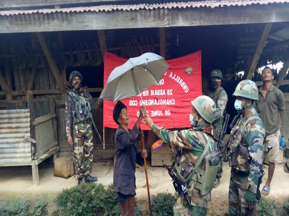 Tuensang Battalion of Assam Rifles under the aegis of HQ IGAR (North) organized free distribution of umbrellas at Yakshu, Changlangshu and Wangti village on June 6, 8 and 12. The distribution was carried out with an aim to assists unprivileged and needy residents, especially the aged and women folk. 100 umbrellas were given out. Besides the distribution, residents were encouraged to advocate for peace and harmony so that progress and development can gain pace in the region. (Photo Courtesy: HQ IGAR North)