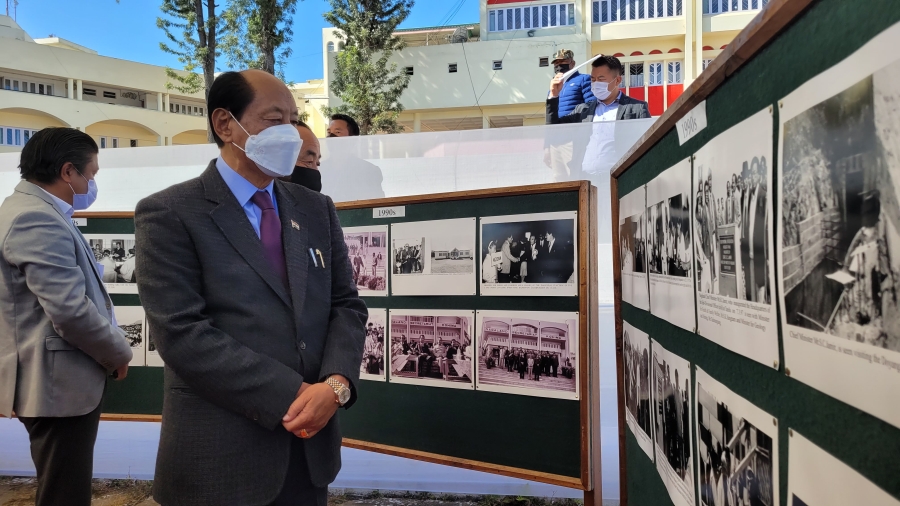 As part of the 59th Nagaland Statehood Day Celebration, Prof Jagdish Mukhi, Governor of Assam and Nagaland along with his wife Prem Mukhi, Officers and Staff of Raj Bhavan paid rich floral tribute at the bust of Dr Imkongliba Ao at Raj Bhavan, Kohima. While celebrating the Statehood Day, the Governor celebrated his 80th Birthday. The officers and staff of Governor's Secretariat led by T Mhabemo Yanthan, Commissioner and Secretary to the Governor wished Prof Jagdish Mukhi a happy, long and healthy life. (DIPR Photo)