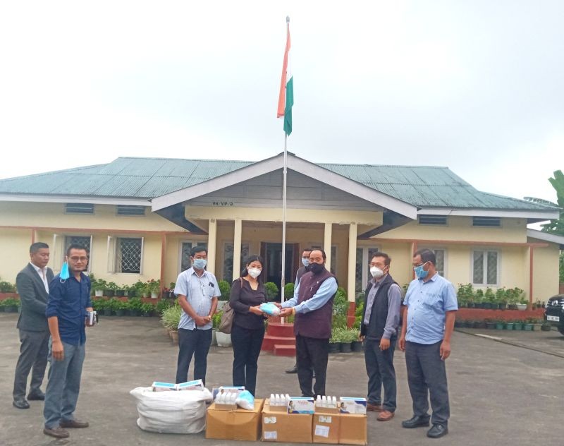 Nagaland’s Deputy Chief Minister Y Patton and others during the donation of protective gear equipments to Nagaland Secretariat Service Association (NSSA) in Kohima on July 1. (Morung Photo)