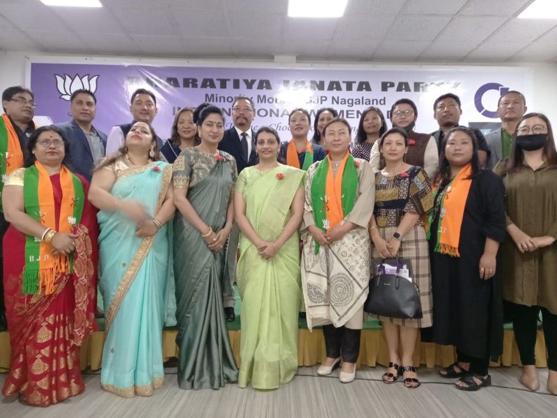 The Minority Morcha BJP Nagaland organised a programme honouring imminent women personalities of Nagaland on March 7, to commemorate International Women’s Day. The honourees included Anita Roy Chowdhury, Mamta Karir, Pushpa Thatal, Neeta Agarwal, Dr Rajani Jain, Awan Konyak, Hekani Jakhalu and Jesmina Zeliang, who are all outstanding personalities in their respective fields. (Photo Courtesy: Minority Morcha BJP Nagaland)
