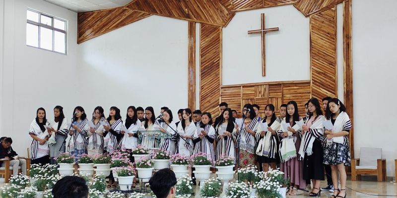 Jr CYE Choir presenting a special song during the 18th Foundation Day the Jr CYE, Christian Revival Church Merhülietsa, Kohima on March 7. The foundation day was celebrated under the theme ‘Worshipping in truth and spirit (John 4:24)’ with speaker Neilhou Sopfünuo, Evangelist, Koinonia Prayer Centre. (Photo Courtesy: Jr CYE CRC Merhülietsa)