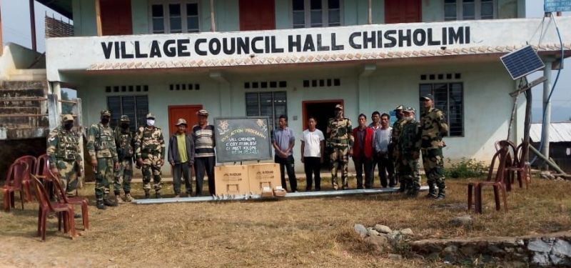 The C Company of 111 Batallion BSF CI Post Kilomi donated two solar street lights to Chisholimi Village Council under their Civic Action Programme on March 4. According to a press release, Chairperson of Chisholimi Village Council Ghonito Kiho thanked and acknowledged the gesture on behalf of the villagers. (Photo Courtesy: Chisholimi Village Council)