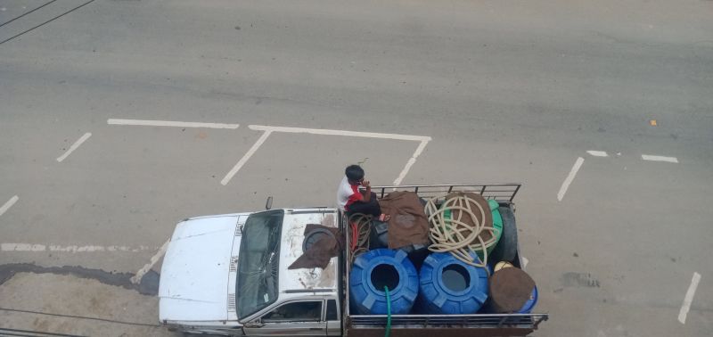 A man busy over cell phone as a private water carrier vehicle deliver water to the consumer amid total lockdown in Nagaland’s state capital Kohima on May 31. (Morung Photo)