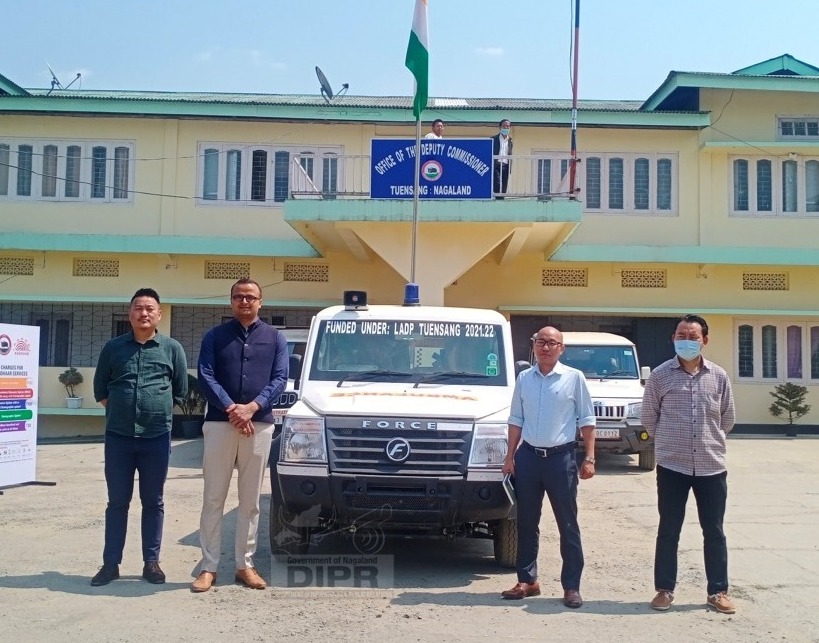 Tuensang District Task Force on COVID-19 handed over an ambulance to Chief Medical Officer, Tuensang. The ambulance was purchased under LADP Common Pool 2021-22. (DIPR Photo)