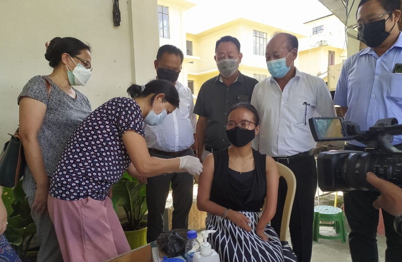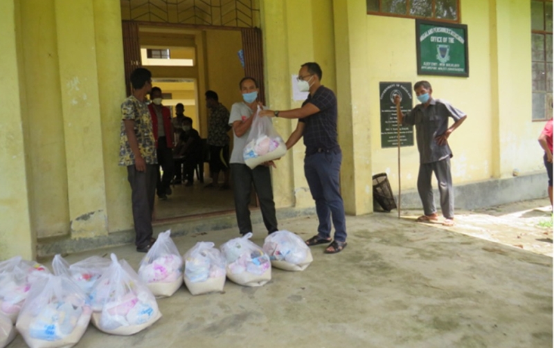 Distribution of relief packages containing basic essential items to families and persons affected by the COVID-19 lockdown under Aboi Sub-division started on June 25 at ADC Office, Aboi. The relief packages which have been arranged by the District Disaster Management Authority, were given out by EAC Longching, Cthitu Nienu. (DIPR Photo)