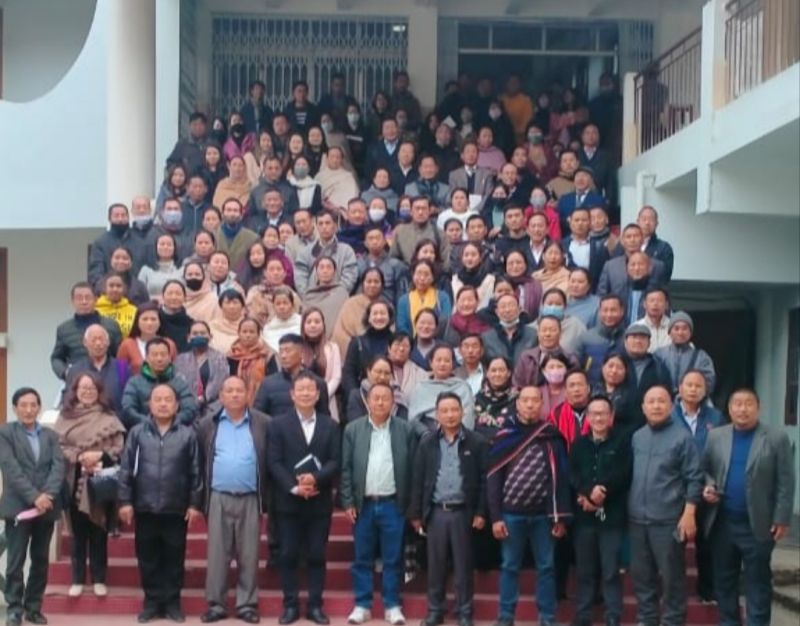 The Chakhesang Baptist Church, Ministers' Hill Kohima (CBCMHK) hosted orientation and fellowship for the church workers on February 20. Sr Pastor, Rev Dr Vevo Phesao Pastor, Rev Dr Wepre Mero, Church Advisor Rev K Luruo, Church Council Chairman Vevo Sapuh, Deacon Er Zuvehu Vero and Deacon Nelhipe Mero were the resource persons. (Photo Courtesy: CBCMHK)