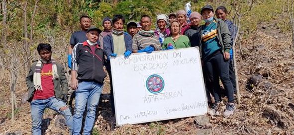 ATMA Peren block conducted demonstration at three farm schools at New Puilwa, Peren village and Mhainamtsi village with resource person, Fishery Demonstrator, Peren Chubatemjen on February 11 and 12. ATM Peren block Kibale and ATM Peren block Kekiepeu Nza also conducted demonstration. Neem oil, Bordeaux mixture, hand gloves, hand sprayer, and seeds were distributed to the 51 farmers who attended the programme. (Photo Courtesy: ATMA Peren block)